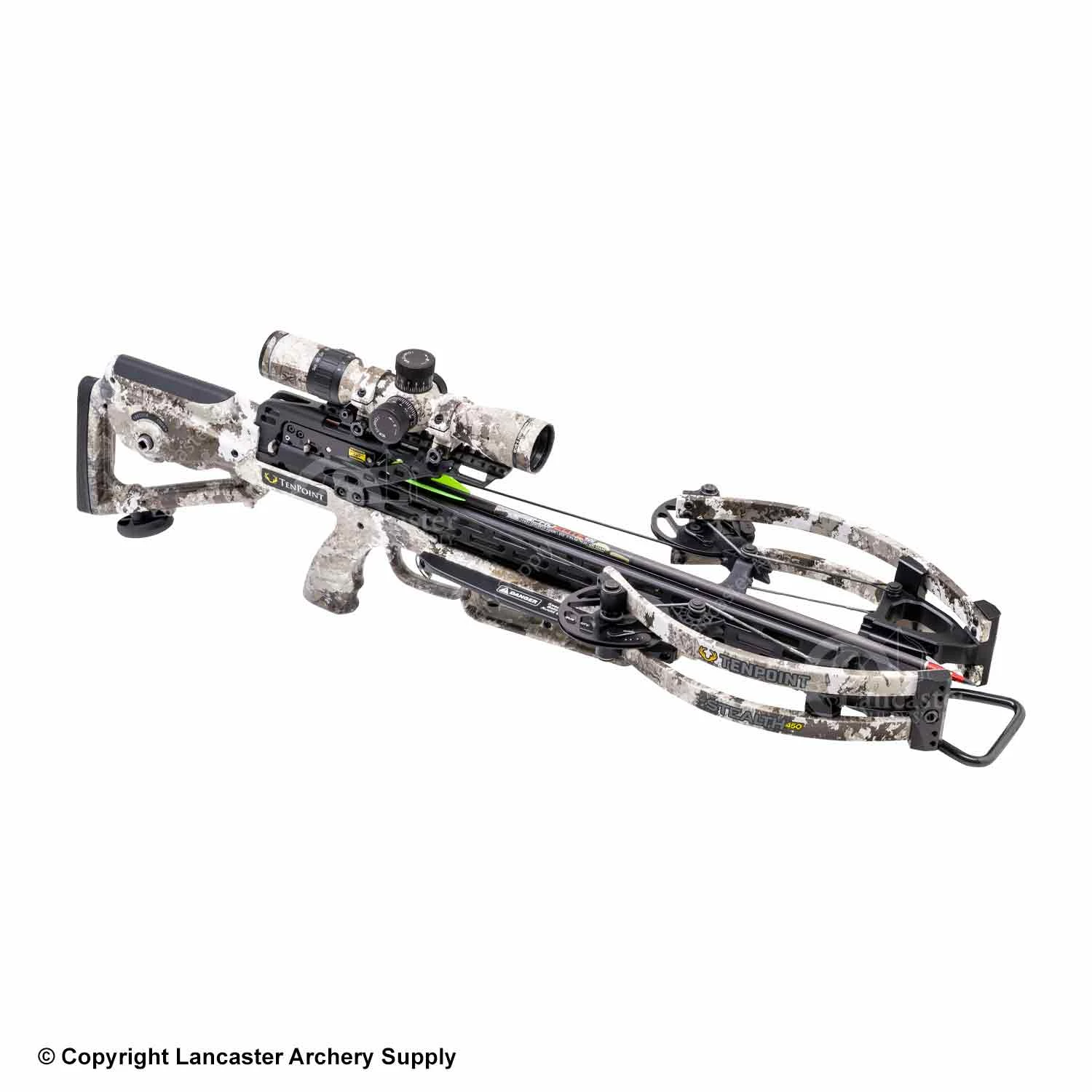 TenPoint’s fastest forward draw crossbow ever, the Stealth 450, is designed for easy carry at just 6.5 inches narrow and 33 inches short. This package comes with the 100-yard EVO-X Marksman Elite crossbow scope and all-new Scope Struts that provide rock-solid mounting for the scope. The Stealth 450 shoots a lightning fast 450 feet-per-second and delivers unrivaled durability and long-range accuracy.